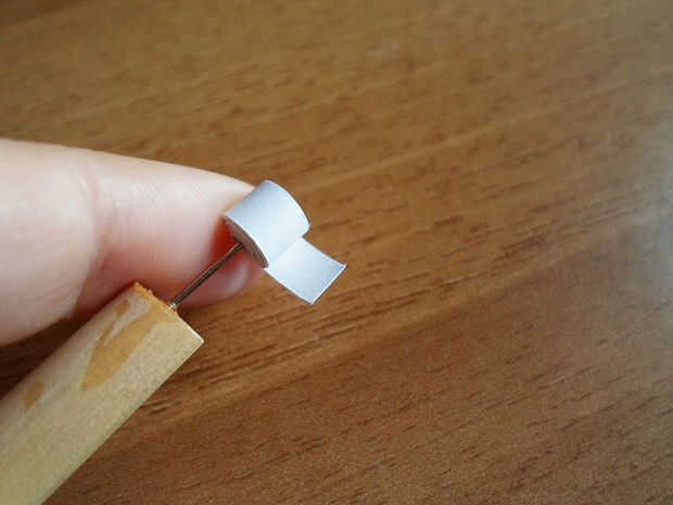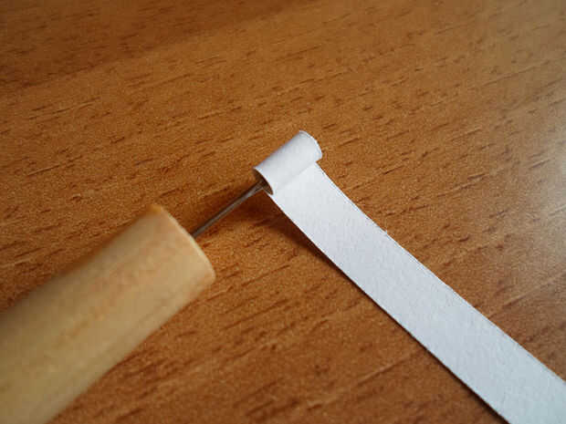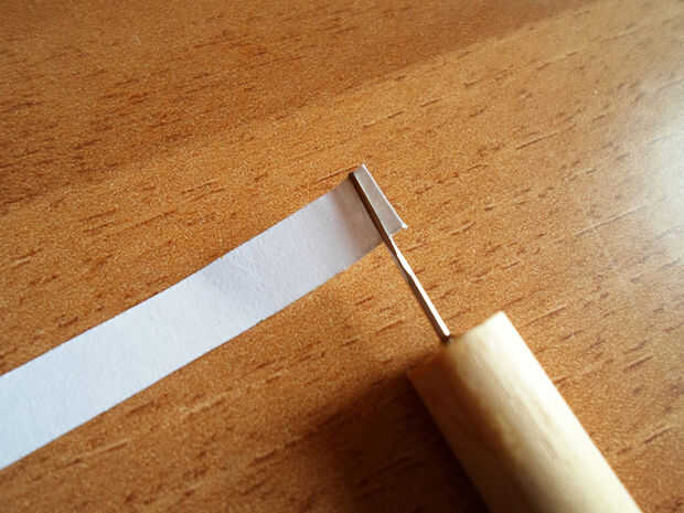 Tomar una de las tiras que ha cortado justo e inserte uno de sus extremos en la herramienta quilling.