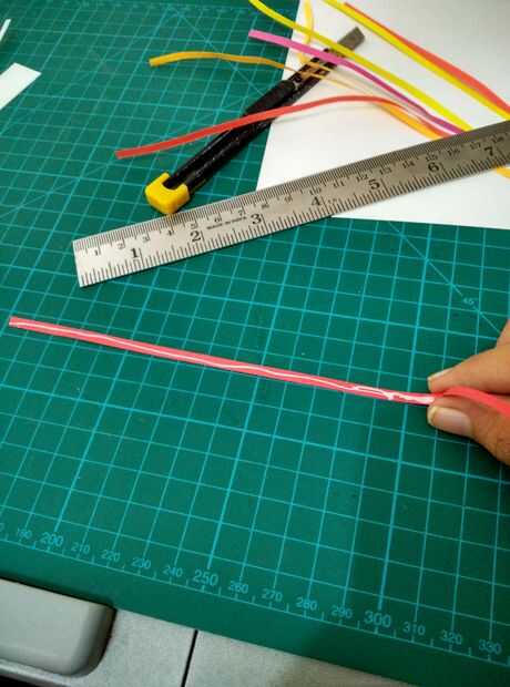 -Preparación de las tiras - plegar todas las tiras que desea utilizar en la mitad y pegarlas y doblarse por lo que las tiras quedan rígidas