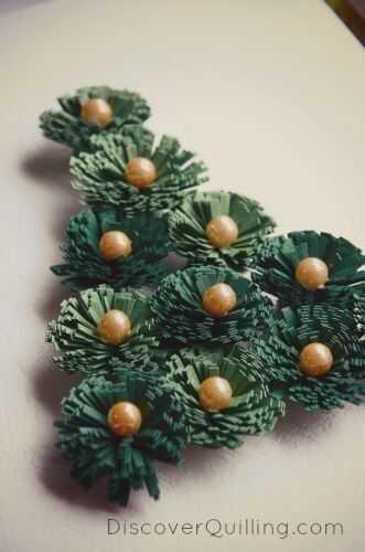 Puede utilizar dos tonos de verde para dar al diseño un efecto agradable, pero un tono funcionaría muy bien. Cortar las tiras a mano pero se puede utilizar a un fringer quilling máquina que durará un tiempo más corto. Se puede adornar el árbol de Navidad en muchas maneras así que siéntete libres de usar tu creatividad y personalizar este diseño.