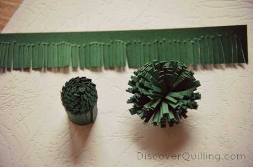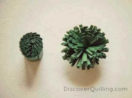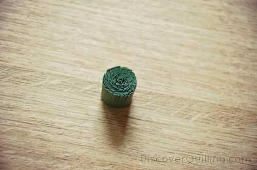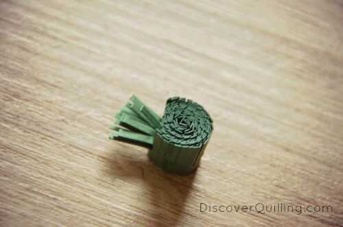 Rollo de tiras de papel como un círculo apretado usando una herramienta de ranurado o a mano.
