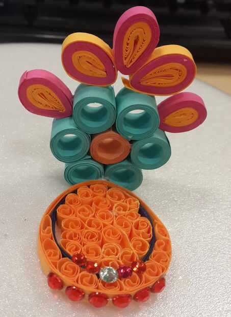 Hice el asiento de la Deidad con el pendiente y por el respaldo que hice círculo con los pétalos de la flor.
