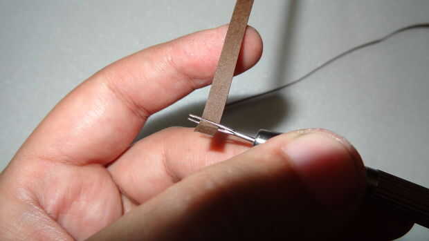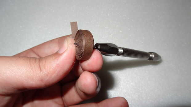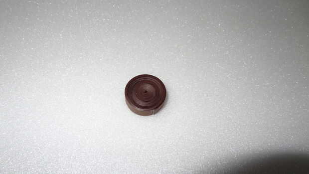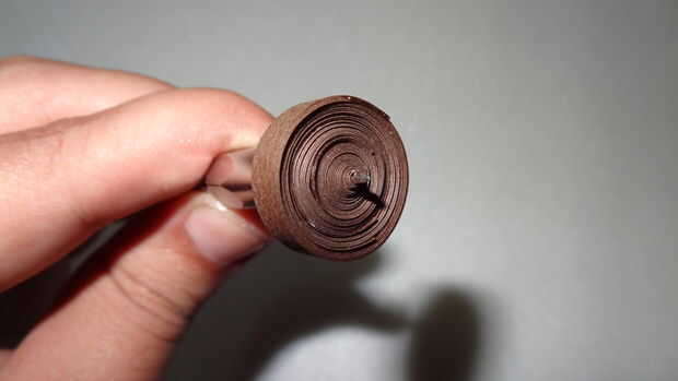 3 - sacar la bobina de la aguja quilling y colóquela sobre una superficie plana. Empuje desde arriba con el pulgar a nivel de la superficie.