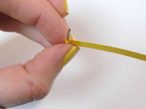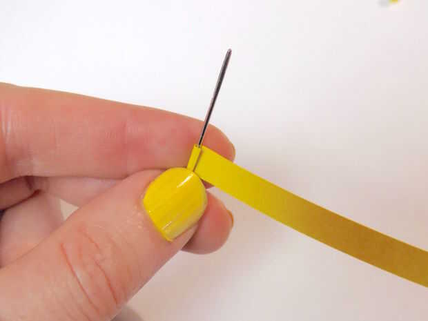 Utilizando una aguja o estilete, rollo de papel alrededor de la aguja entre los dedos.