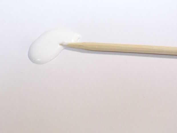Con un pincho o palillo de dientes, aplique una capa delgada de pegamento pegajoso seco rápido en el extremo de la tira.