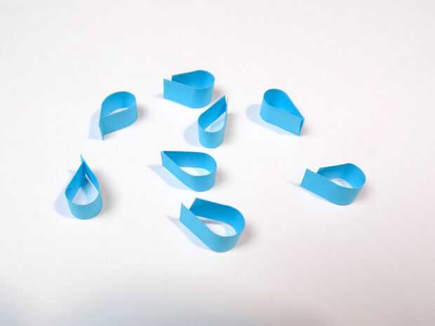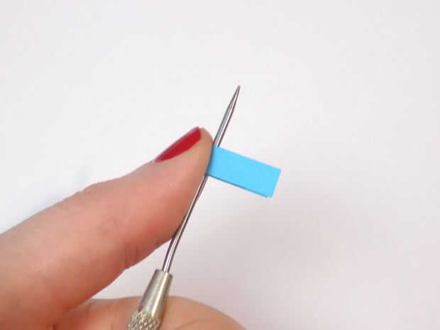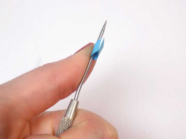 El centro de cada tira contra su estilete o aguja del rodillo. Esto crea una forma de pétalo o gota de agua.