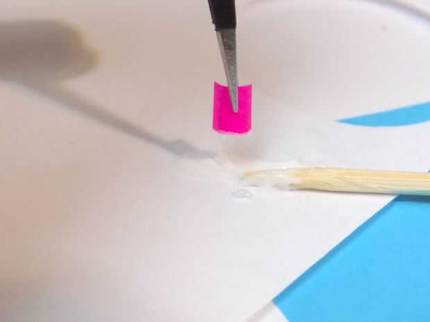 Porque estas piezas son tan pequeñas, puede utilizar las pinzas y sumergir suavemente en la cola antes de colocar entre cada pétalo.