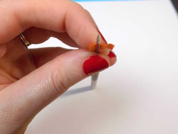 Utilice unas pinzas para suavemente moje en el pegamento y coloca entre cada pétalo.