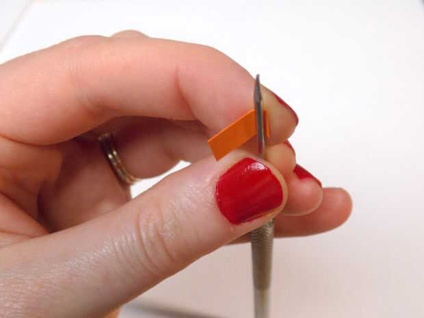 Cortar tiras que son ligeramente más largas que la distancia entre la bobina de centro y el acento redondeado más cercano al centro.