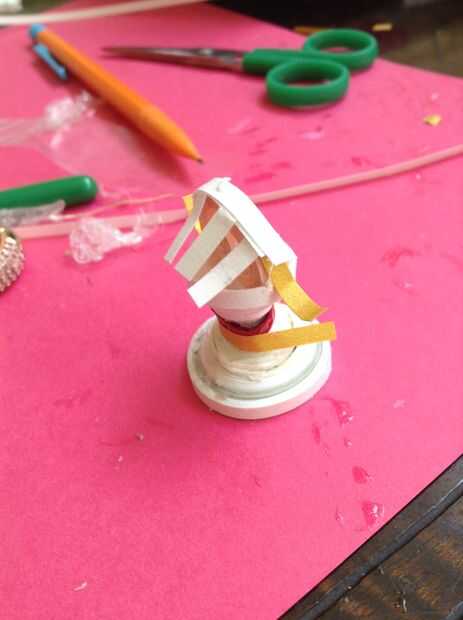 Para hacer el velo, corte un pedazo de papel blanco para ajustarse al tamaño de la cabeza. Colocar pequeñas tiras de papel blanco a ella y luego pegue en la cabeza.
