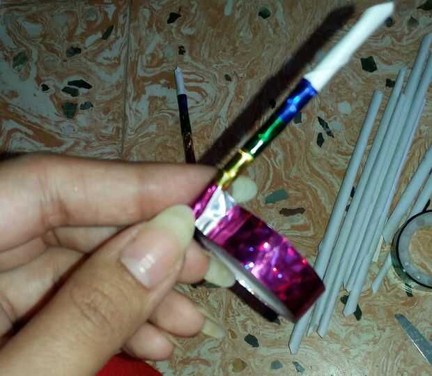 Este arte de uñas de paleta de arco iris es colorido, lindo y de moda. Aquí es cómo volver a crear el look en cuatro sencillos pasos.Tendrá rojo, naranja, amarillo, verde, azul, blanco y brillo de lacas de uñas, una herramienta del arte del clavo y p