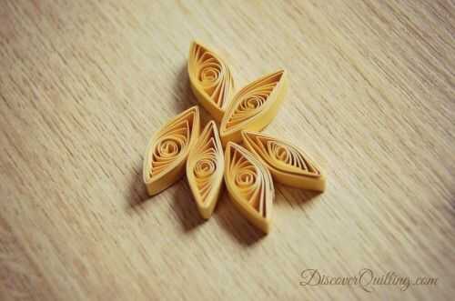 Utilizar 6 tiras de papel para crear 6 toldos y 6 tiras de papel para crear formas de "corazón" 6. Si necesita ayuda con esta visita esta página para aprender a crear formas básicas quilling (o ver un breve video tutorial aquí). Para las formas de corazón, crea una forma de lágrima luego presione internamente en la parte redondeada para darle forma de corazón.