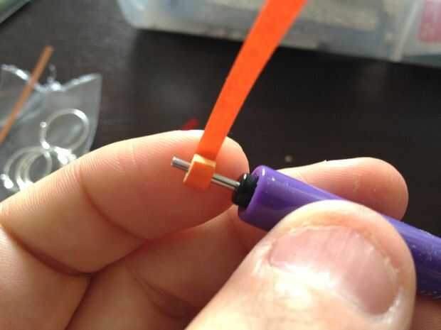 Ahora escoja siguiente color. Poner una gota de pegamento en el extremo y péguela a la parte exterior del círculo ya hiciste (tratar de coincidir al final de la última tira para reducir agujeros en le círculo). Repita este proceso con tantos colores como quieras hasta que sienta que el círculo se ve bien. Pega el último Consejo al círculo y durante veinte segundos. Entonces tire el círculo entero de la herramienta.