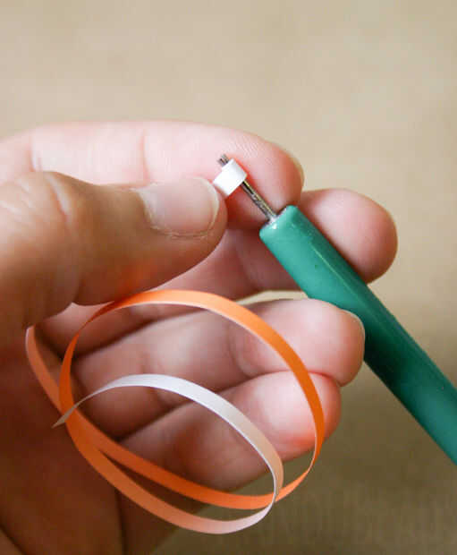 Ahora, coloque un extremo en la ranura de la herramienta quilling y suavemente empezar a rodar la tira alrededor de sí mismo. Cuando digo suavemente, quiero decir, "restauración de la Mona Lisa" suavemente.