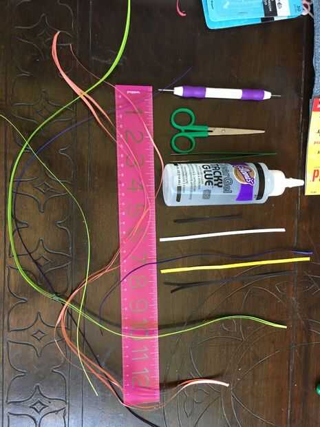 3 tiras de color rosa, cortar en tercios, así que 9 piezas