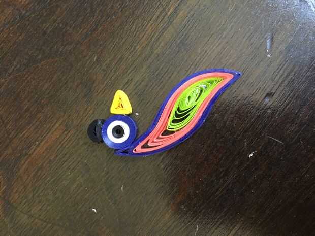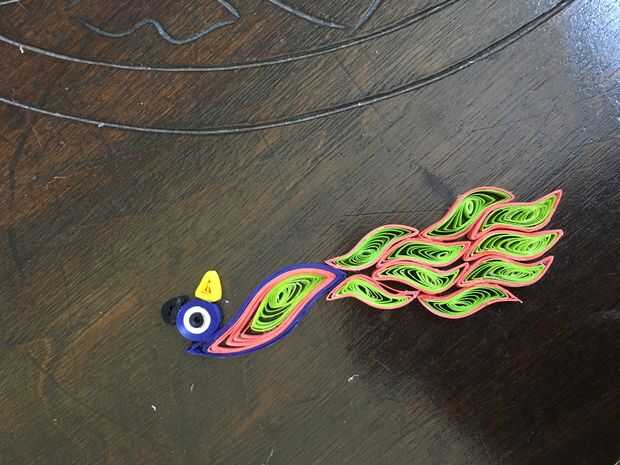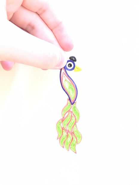 Pegar la cabeza del pavo real a la curva en el cuerpo (más fácil de ver en la imagen). Sujetar las plumas a base de thte de pavo real en cualquier manera que te gusta. Don usted no tiene que seguir lo que hice. Déjelo secar.