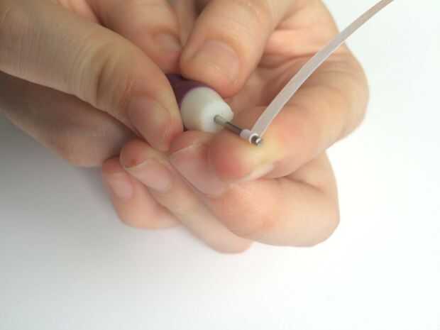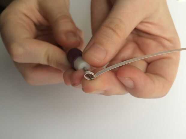 · No hacer una bobina, arrastre la herramienta de ranura unos centímetros abajo de la tira de papel para crear un óvalo pequeño, asegure con pegamento