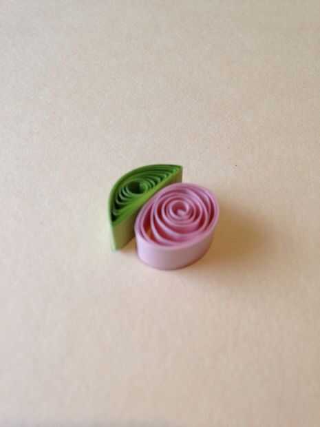 Forma las bobinas verdes en medias lunas y pegar uno a cada óvalo rosado.