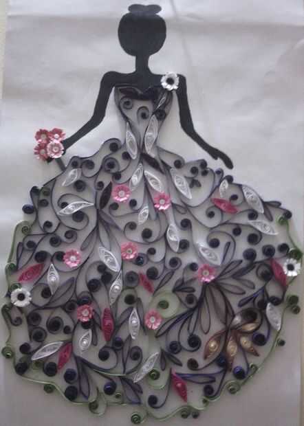 La muñeca negra se inicia con el bosquejo ligero y pegar las tiras de quilling en forma de crepers, flores etc.... Tardó medio día a completar esto.