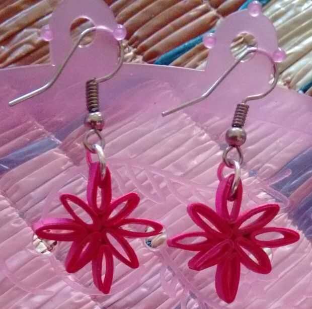 Los anillos de oído Quilling es como una flor y colgados en el gancho de oreja.