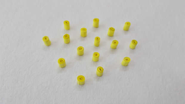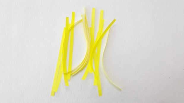 Dividir y cortar una tira de quilling en 4 partes iguales y hacer pequeñas bobinas firmemente.