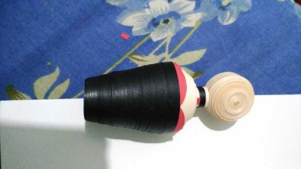 ahora fijar cuello de cuerpo y cara como se muestra en la imagen. Cuando usted fija cuello no olvide pegar la tira negra de 3 o 2 mm.u puede cortar el papel rojo también pequeño 5 mm strip.and. va a ser mirada como el collar de la muñeca.