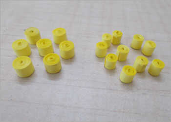 Amarillo tiras encañonado y múltiples bobinas firmemente de cada uno. Algunos de ellos hacen grandes y algunos pequeños en tamaño.