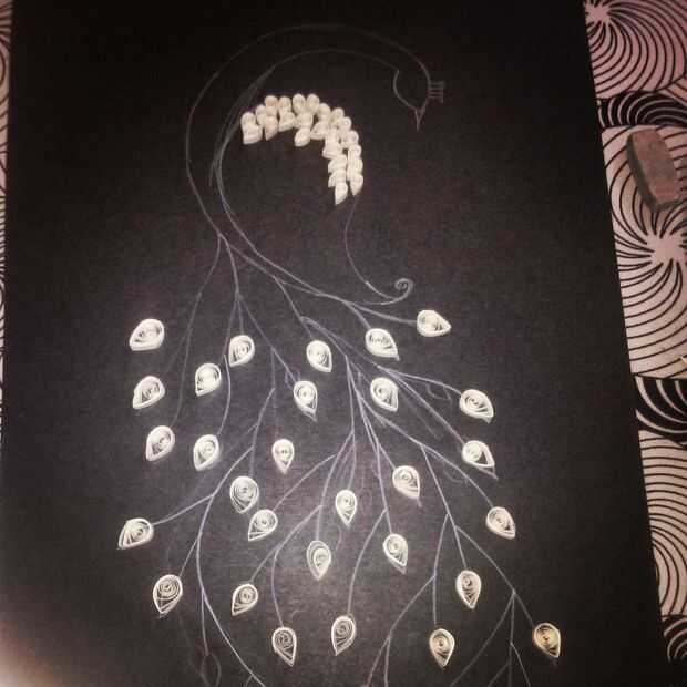 Para el cuerpo usé la mitad de la tira de quilling lo enrolladas y pellizca para formar un rollo de gota en forma de lágrima. Para el cuerpo utilicé 1/4 de una tira para hacer cada lágrima caída en forma de voluta.
