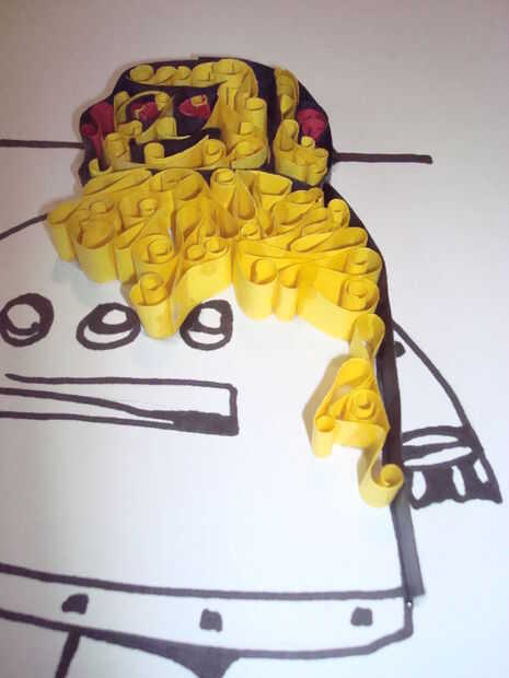 Unir los bordes de los papeles rizados y poner un poco de pegamento en la base de las tiras de papel y el papel que va a montar a. El pegamento estupendo es bueno para esto porque se seca rápido así que no tienes que mantener las piezas en su lugar muy largo.