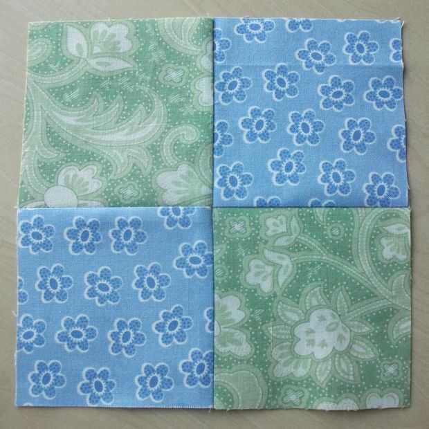 El bloque de cuatro parches es uno de los bloques de tejido juntado las piezas más simples. Se hace cosiendo 4 cuadrados del mismo tamaño para formar un cuadrado más grande. Cuatro bloques de parche pueden hacerse usando a 2, 3 o 4 diferentes telas según el efecto que buscas.