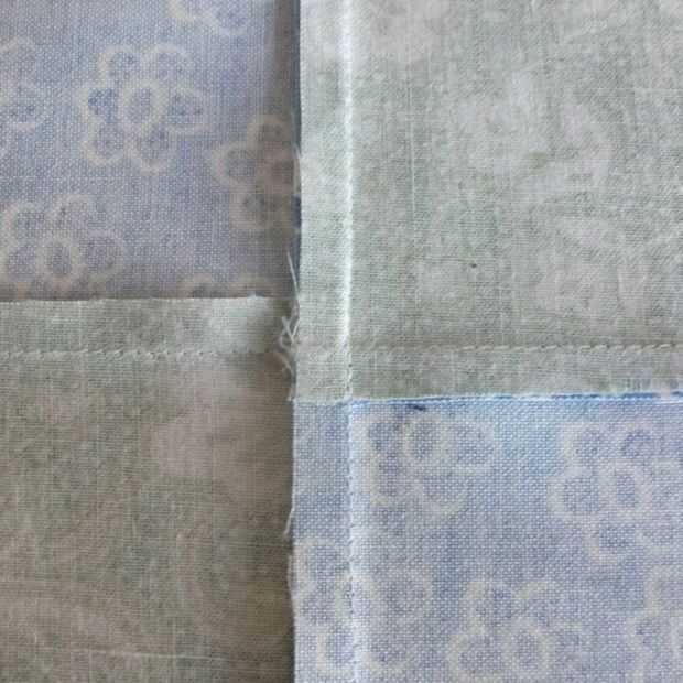 Coser una costura de 1/4" por el lado derecho de sus plazas. Al llegar a la costura que alimentarla suavemente debajo del pie para que no voltear y tratar de mantener las costuras tope derecha uno contra el otro.