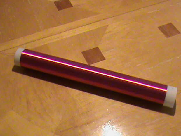Necesitaremos alambre de cobre magneto con un revestimiento aislante. Cable se encuentra fácilmente en sitios de subasta y la electrónica. En los E.e.u.u., alambre está clasificado por calibre, en base al diámetro del alambre. Cuanto mayor sea el calibre, el más pequeño el diámetro del alambre. calibre 40 es más delgado que un cabello humano. Alambrado de casa suele ser calibre 10 o 12, dependiendo de qué carga está pensada para llevar. Para nuestra secundaria, queremos alambre bastante fino, que nos dará un montón de vueltas. El número de vueltas del alambre determina la frecuencia resonante de la bobina y en general, más vueltas = mayor frecuencia = salida más, dado el mismo poder en.
