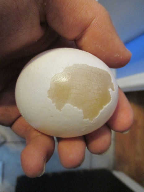 * Cuando manejo los huevos hacen que la piel permanezca húmeda * Si la seca de la membrana, el huevo puede y probablemente aparecerá. Esto aprendí la manera dura.