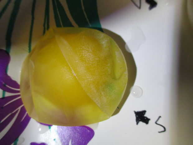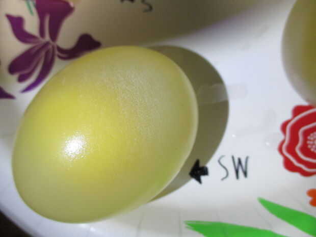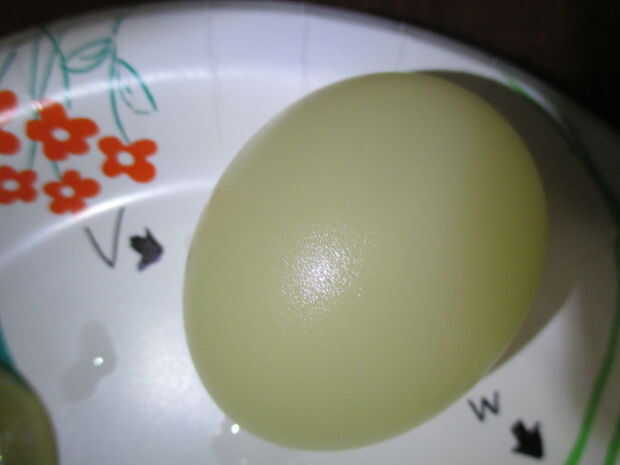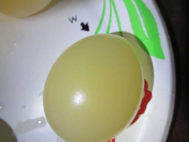 La siguiente foto es del huevo que remojadas en agua. Aunque no puede decir a partir de la imagen, el huevo es más redondo e hinchada de lo que era antes de que fuera en el agua. Como nota al margen, este huevo fue también un poco más firme que el resto.