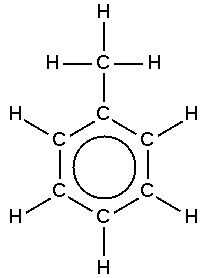 Hidrocarburos aromáticos son cíclicos en la naturaleza, lo que significa que la carne de ambos extremos hacia arriba y enlace para formar una forma redonda. Compuestos aromáticos tienen una fórmula molecular de CnHn, es importante entender por qué esto no es CnH2n donde cada carbono se enlace a los dos carbonos vecinos y dos hidrógenos. La razón es CnHn porque cada átomo de carbono libera un electrón en el centro del anillo, este puede ser mostrado también como alternarse solo y enlaces dobles. Pero de cualquier manera el efecto es que cada carbono tiene solamente un hidrógeno o libre escoja el enlace. La imagen adjunta es la de "Toleune" que es la sustancia química; Ciclohexano con una rama de metilo. Confusamente ciclohexano se conoce comúnmente como el benceno (también conocido como anillo de benceno/s)