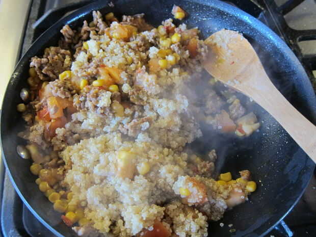 Cocinar la quinua según las indicaciones del paquete, recordando al primer enjuague ellos realmente bien para quitar la amargura. Por lo general, para cocinar 1 taza de quinua, necesitas 1 taza de agua hirviendo y 1/2 taza de quinua. Sólo llevar el agua a hervir añadir la quinua, reducir el calor y hervir la quinoa durante 7 minutos, retirar del fuego y cubrir durante 15 minutos.