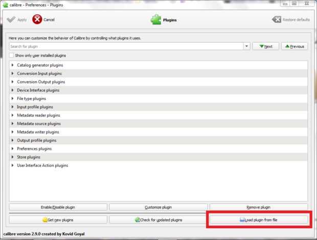 En primer lugar, instalar Python y PyCrypto (en ese orden) si no ya tienes. A continuación, lanzar Calibre y abrir las preferencias en la barra de herramientas superior. Busque el botón de "Plugins" y haga clic en él. A continuación, haga clic en "Plugin de carga desde archivo". Ahora vaya a la carpeta de la Alf herramientas zip-archivo y busque la carpeta que dice algo al efecto de "DeDRM calibre plugin". Abrir y seleccione el archivo .zip como el plugin e instalarlo. Ahora reinicia Calibre después de instalar el plugin.