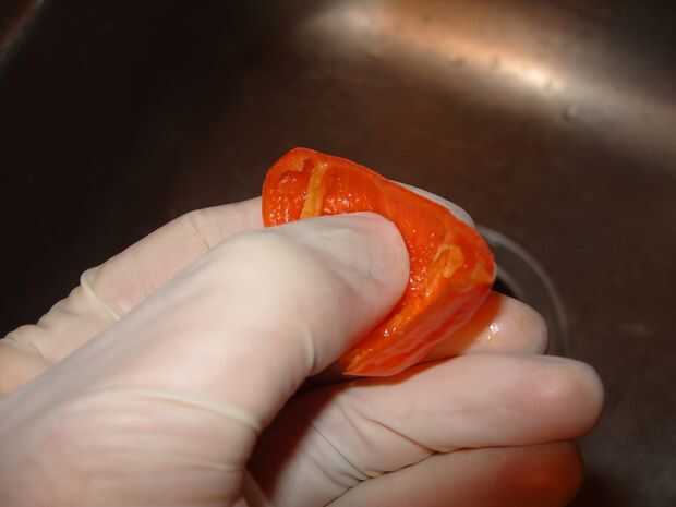 Con la uña del pulgar o una cuchara, raspa el interior de la carne de pimiento. Asegúrese de que cada esquina y borde; sólo un nibble puede patear bastante duro.