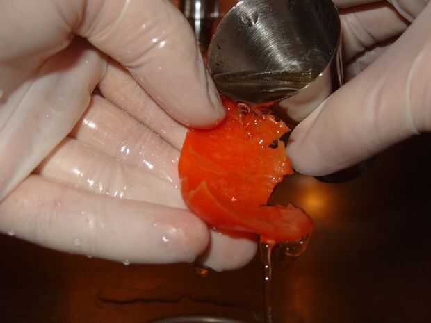 Vierta cualquier bebida dura eligió a la pimienta y frotar en apenas como usted hizo con el aceite de oliva.