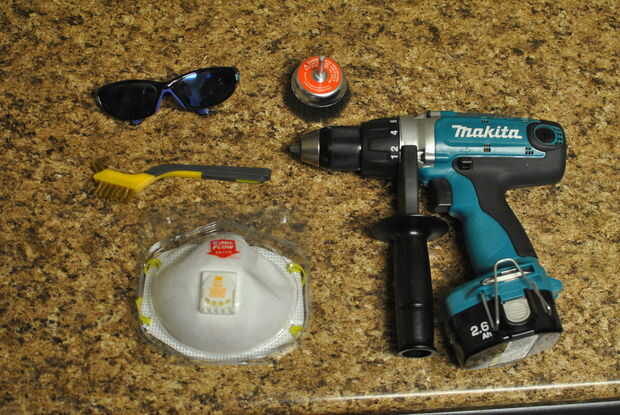 Paso 2 C - Instale el cepillo de alambre en el mandril de su taladro. Asegúrese de que el mandril está firmemente en la punta del pincel.