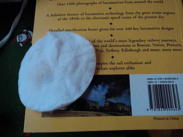 Ahora podría pasar a la portada y quitar etiqueta de 2 por 1. Simplemente me frota con bola de algodón humedecido en removedor de esmalte y pela al instante. Después solo presiona bola de algodón sobre la etiqueta y lo húmedo y podría ser quitado en una sola pieza.