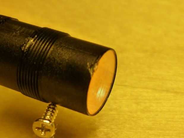 Usando una navaja de utilidad hacer una pequeña muesca en forma de "V" en el cañón de la Asamblea de lente.