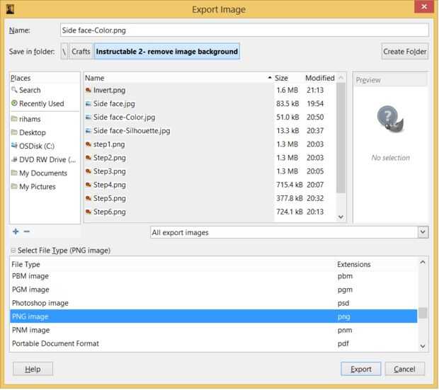 Vaya a archivo -> Exportar como -> tipo de archivo seleccionar y guardar la imagen, los archivos png conservarán la transparencia