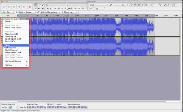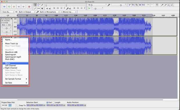 Luego volver al desplegable de la flecha al lado del nombre de la canción y haz clic en "Mono". Hacer esto para ambas vías. Este establece que cada señal de audio se enruta a través de un solo canal.