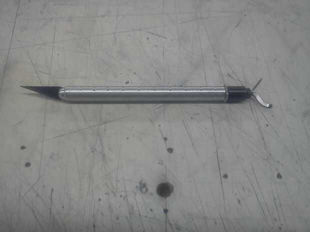 y tendrás un cuchillo que hace ambas cosas... Cuchilla X-acto en uno extremo y desbarbe herramienta por otra...