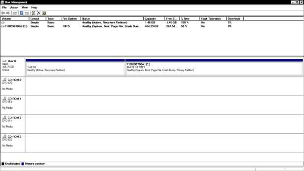 Abrir panel de control y vaya a formato y particiones de discos duros.