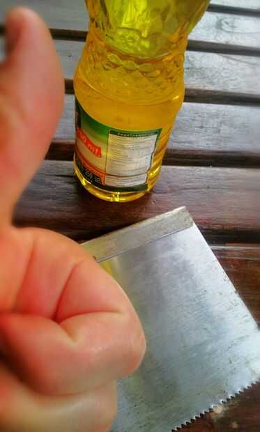 Una vez terminado, el aceite puede ser limpiado con agua y jabón (o sólo frota con papel si quiere mantener su sierra engrasado).