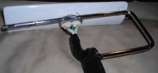 Con el cable conectado a un emisor, el gancho este tinglado hasta el rodillo. Usé alambre para asegurar el emisor y cinta aislante, que derretirá probablemente desastrosamente para el cable. El cable no 's increíblemente estable, por lo que vamos a utilizar el reflector para garantizar aún más el emisor.