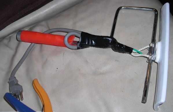 A continuación, empalme el cable hacia el emisor. Puede que necesite quitar algunos de los discos de cerámica blanco para conseguir la suficiente longitud de cable en el extremo emisor de cosas. Un cable de emisor va a negro en el cable y uno en blanco; no importa que a los que. Puede asegurar estas juntos mediante habilidades torcer hilo fantasiosos, capuchones, o, si usted quiere hacer las cosas bien, algunos no conductiva tipo de cinta resistente al calor.