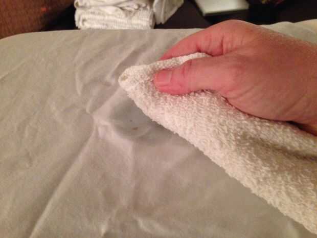 Verter peróxido en la mancha y darle una buena friega con el trapo limpio. No dude en utilizar como mucho peróxido como se siente a gusto con - usted quiere realmente dar la mancha un buen remojo, seguido de una exfoliación buena. Darle un chapoteo pasado y dejar reposar durante 5 minutos o menos.