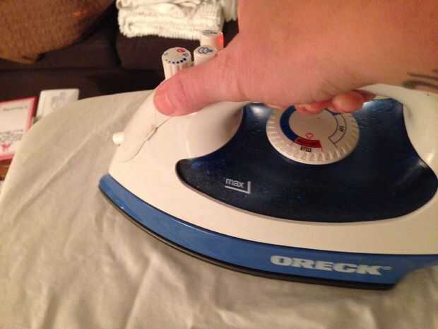 Una vez que ha tenido la oportunidad de reposar unos minutos, tomar el hierro caliente y circulan por el lugar hasta que la mancha desaparezca. Puede notar un anillo alrededor de donde estaba el peróxido - sólo mojarla con la botella de spray y volver sobre él con el hierro. Voila!